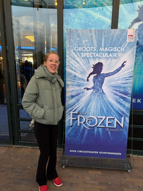 In de avond zijn we naar het circustheater gewandeld en kwamen we erachter dat we een prachtige plek in de zaal hadden, rij 8 en precies in het midden. Doordat we zo dicht bij het podium zaten konden we de mimiek van de spelers goed zien en hebben we nog meer genoten. We hadden geluk, Vayen speelde Elsa en we hadden een ontzettend goede en grappige Anna. In de pauze kregen we een hapje en een drankje en na afloop heeft Marit nog een mooi souvenir uitgezocht.